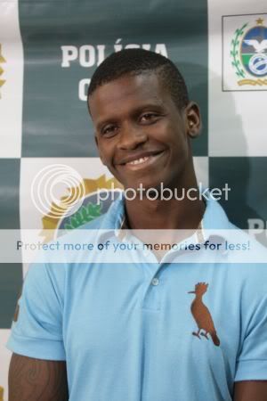 Vejam a cara de pavor, de rendição e de quem está muito preocupado com o que o futuro lhe reserva. Atentem para o fato de que ele não está todo sujo, cheio de lama, saindo da mata em desespero. Ele tava em casa, tomou um banho, vestiu a camisa que mais gosta e foi fazer social com a PF. Se você acha que esta foto é compatível com o que seria alguém do “alto escalão” (hahahaha) do tráfico se entregando por medo (HAHAHAHA) então sugiro que vá ler outro blog e me faça o favor de não passar mais aqui.